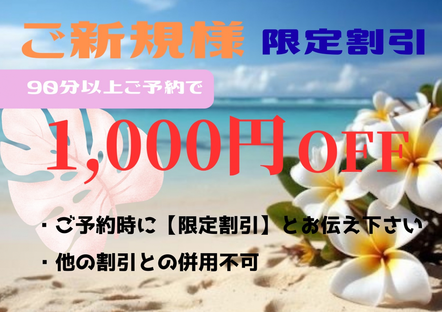 ※ご予約時に【新規限定割引】とお伝えください。